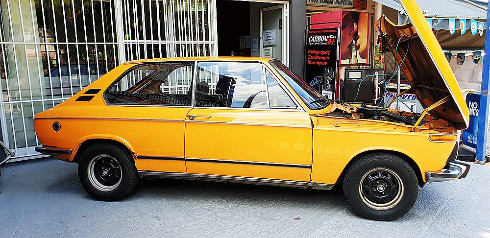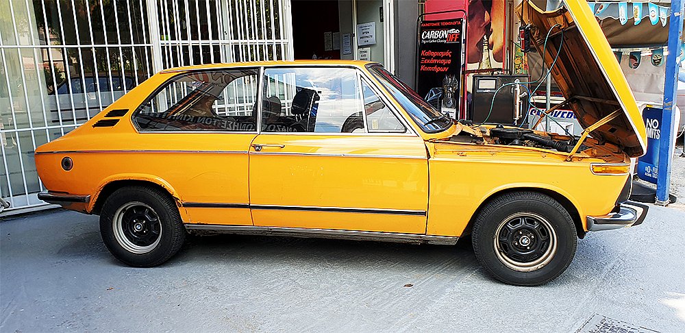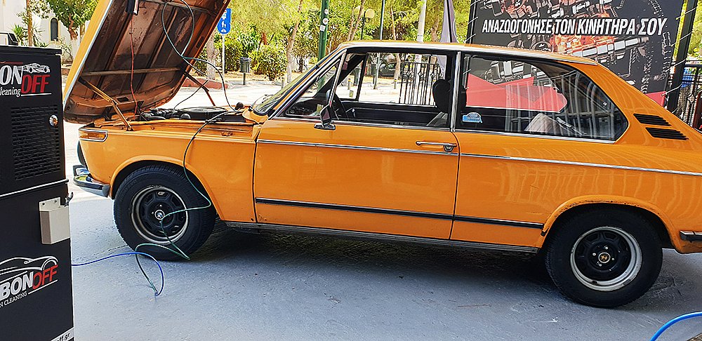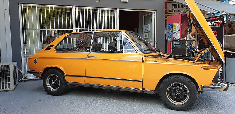 Το έτος κατασκευής της πορτοκαλί BMW είναι το μακρινό 1971! Το αυτοκίνητο διατηρείται σε κατάσταση ιστορικού αυτοκινήτου και φροντίσαμε για τον καθαρισμό της καρβουνίλας από το εσωτερικό του κινητήρα του. Ο σχεδόν 50 ετών κινητήρας έδειξε αμέσως να βελτιώνει τον τρόπο λειτουργίας του, σταθεροποιώντας το ρελαντί του και αποδίδοντας καλύτερα σε όλο το φάσμα των στροφών λειτουργίας του.